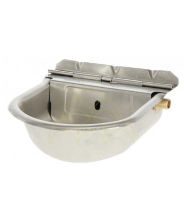 High capacity automatic drinker for high pressure networks made entirely of stainless steel with a constant level of water that can be regulated through its valve. It can be fastened using screws on rigid or semi-rigid surfaces such as walls or wire mesh. Suitable for medium-large sized animals.