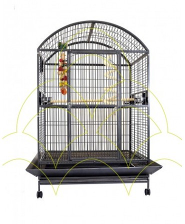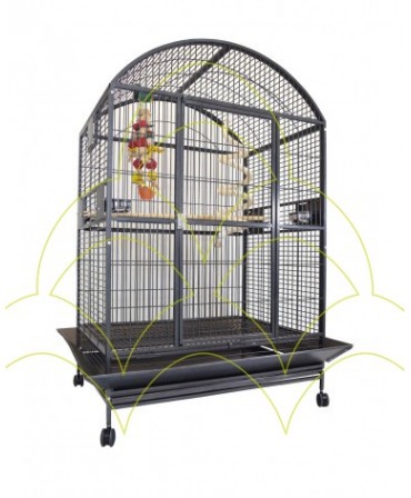 The 2m² Parrot Nursery with Mesh Roof and Wheels is the ideal choice for keeping your birds, such as cockatoos, macaws, grey parrots etc., safe and comfortable. This vivarium includes wheels that make it easy to move around and a removable bottom tray for efficient cleaning. With a pedestrian door and a lock that allows the use of padlocks for added security, the vivarium offers a practical solution. The swivelling stainless steel feeders ensure easy access to food, and the mesh roof ensures optimum ventilation.