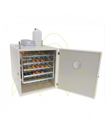 This hatcher for exotic birds automatically controls the set temperature through a digital decimal thermostat and reads the humidity previously set. The humidification system is manual and is generated by water surface evaporation. It has indirect forced ventilation through a special fan for breeding.