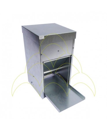 Large capacity plastic feeder with lid, handle and anti-waste grid with a capacity of 16kg of feed.