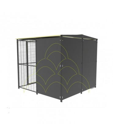 The 4m² kennel with a pitched roof offers complete protection from the elements and is ideal for keeping dogs sheltered from the sun and rain. It has opaque side panels for greater privacy and security. The pedestrian door allows security locks to be fitted, ensuring peace of mind. With the possibility of installing funnel feeders, this kennel makes feeding practical, all in a system made from corrosion-resistant materials that are easy to assemble.