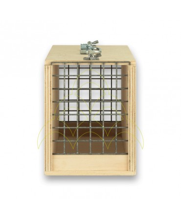 Carrier made from pine plywood, with a parallelepiped shape, extremely solid and highly resistant to water. It has 2 Italian mesh doors, front and rear, making it easy to mobilise the bird without disturbing it.