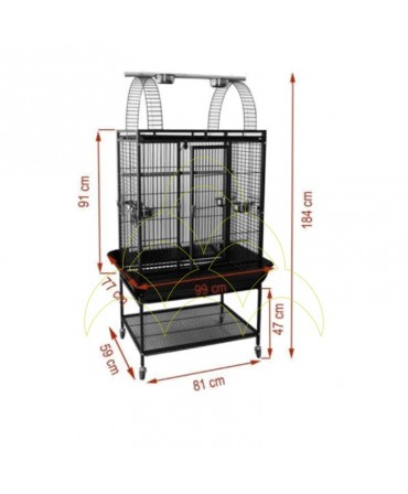 Parrot Cage No. 5 is suitable for small and medium-sized parrots such as yacos, amazons and nymphs. With a functional design, it includes two stainless steel feeders, a wooden perch and a park at the top of the cage. It has a removable tray and grill for easy cleaning, as well as side trays for collecting waste.