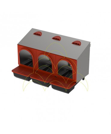 Ninho individual para galinhas de aplicação interior, em chapa galvanizada e com uma nova bandeja em plástico fácil de remover para melhor limpeza e desinfecção. A cobertura do ninho tem aberturas para evitar a condensação do ar no seu interior.