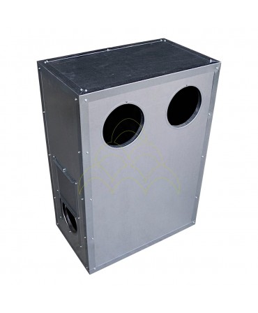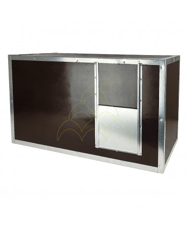 Ninho de aplicação interior e exterior, para catatuas, em contraplacado marítimo laminado e reforçado com chapa e cantoneira galvanizadas, com 2 aberturas de aresta circular com protecção anti-picagem. Tem porta lateral de acesso ao interior do ninho. Extremamente durável.
