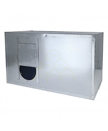 Ninho de aplicação interior para galinhas com pernas metálicas em chapa galvanizada e com uma nova bandeja em plástico fácil de remover para melhor limpeza e desinfecção. O depósito frontal permite armazenar entre 8 a 12 ovos e tem uma tampa que facilmente se abre e eleva com uma só mão para recolher os ovos.