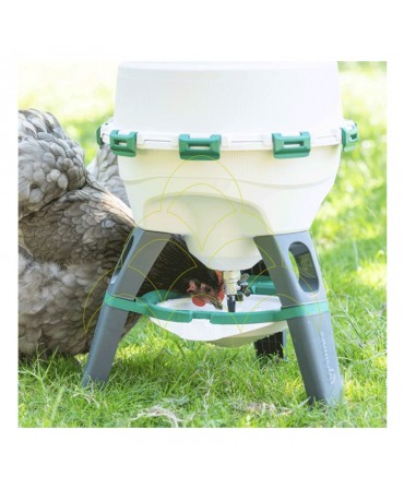 Novo bebedouro para galinhas com capacidade para 35 litros de água com 3 pernas. Fabricado em plástico, sem BPA e protegido contra raios UV. Design moderno e concebido para o máximo desempenho. Fácil enchimento com água. Permite a limpeza e desinfecção total. Pode ser desmontado sem a necessidade de ferramentas. Ideal para 24 galinhas.