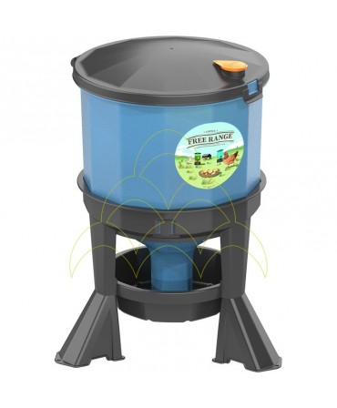 Bebedouro manual de elevada qualidade, em plástico, com três pernas e tampão, com capacidade para 30 litros de água. Funciona com um nível constante de água no reservatório inferior.
