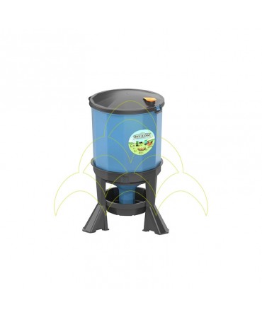 Bebedouro em plástico com pernas metálicas galvanizadas, com capacidade para 30 litros de água. Funciona com um nível constante de água no reservatório inferior.