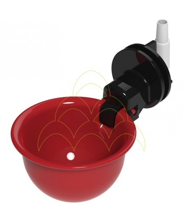 Bebedouro automático em plástico de elevada qualidade, de nível constante de água, de tamanho grande, para rede universal e fácil de instalar. Fornecido com ligador a mangueira micro-tubo flexível. A ligação da mangueira micro-tubo flexível ao bocal do bebedouro é feita pelo lado exterior da jaula.