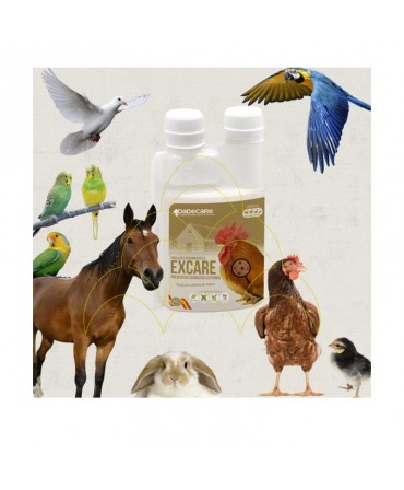 Além da ação repelente, Excare contribui para o equilíbrio e resistência do organismo das aves, reduzindo o stress e melhorando o seu estado geral. É um produto fácil de administrar, bastando diluí-lo na água de bebida. Pode ser utilizado de forma preventiva, durante todo o ano, e não compromete a segurança alimentar, permitindo o consumo de ovos sem qualquer período de carência.